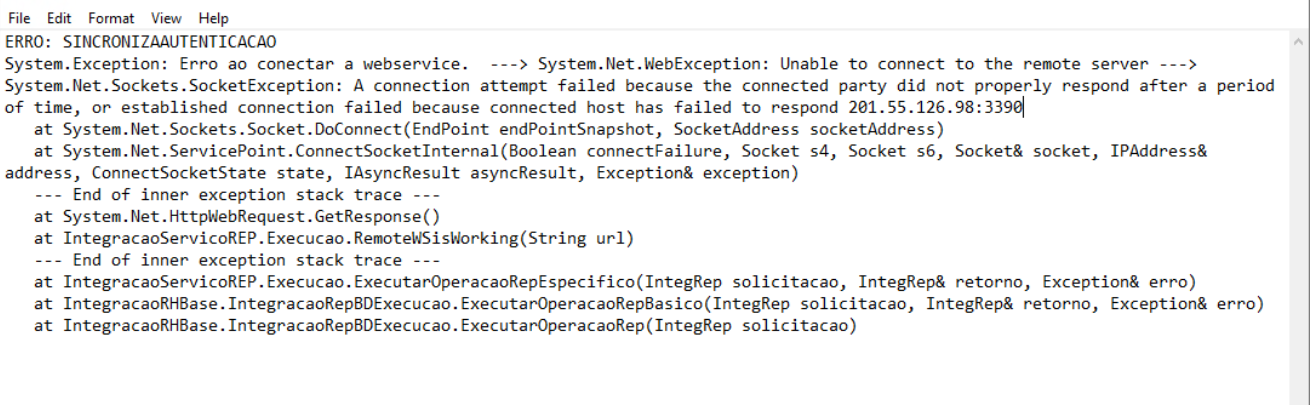 Neste outro exemplo abaixo, o sistema tambem gera um arquivo de log que fica na pasta rhsis contendo outras informações importantes que ajuda a identificar o problema.
