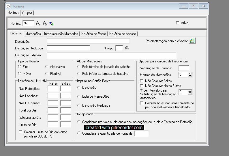 Vá em Arquivo > Tabelas do Ponto > Horário.