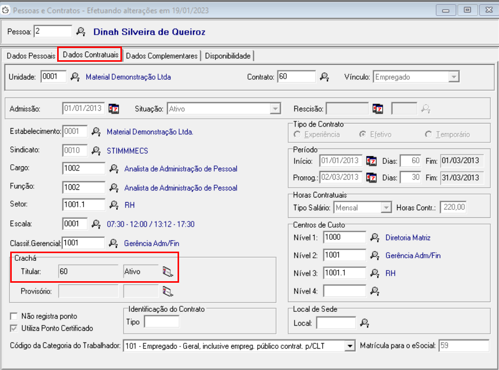- Na aba Dados Contratuais, insira o número do Crachá Titular.