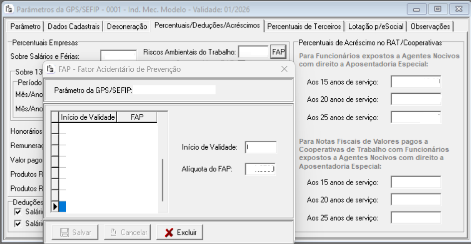 Ao imprimir o relatório RHPR1906 - Relatório Inf. Contrib. Sociais Folha (Substitui o relatório da GPS 1560) não está sendo considerado o FAP, mesmo que a informação esteja correta nos Parâmetros de GPS/SEFIP: