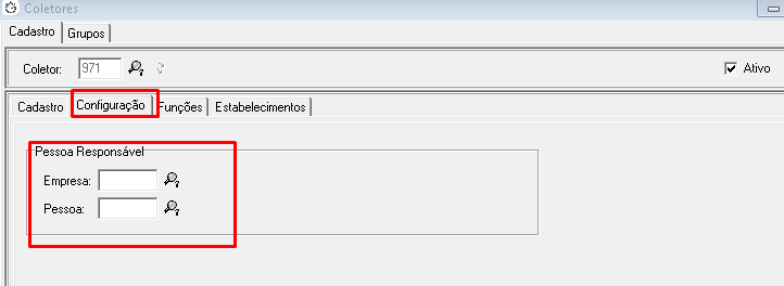 Na Guia Configuração informe os dados da pessoa responsável pelo coletor: