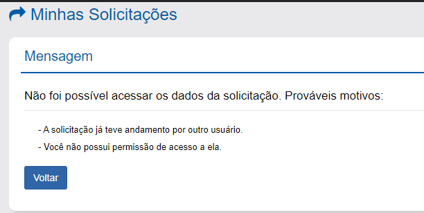 Não foi possível acessar os dados da Solicitação. Prováveis motivos: