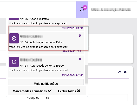 O sininho é uma ferramenta de alerta onde o portal irá notificar as solicitações quando abertas, pendentes ou finalizadas. O sininho não tem integração de quando é executado/aprovado a solicitação, ou seja, se é executado ou aprovador não irá ocultar a solicitação do sininho.
