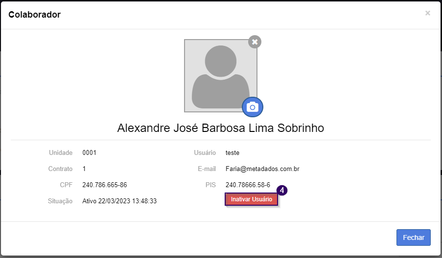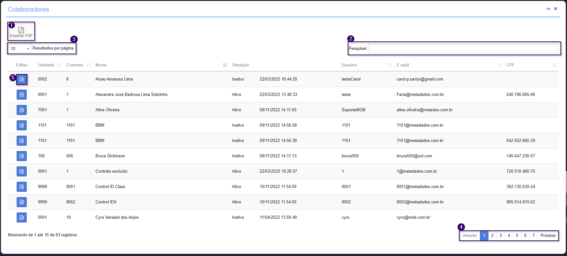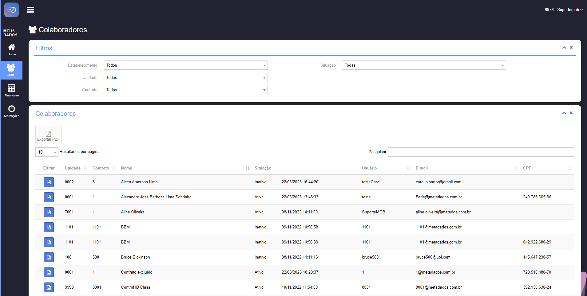 4. No Botão Editar, ao lado de cada colaborador, é possível realizar a manutenção individual dos colaboradores.