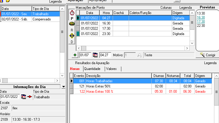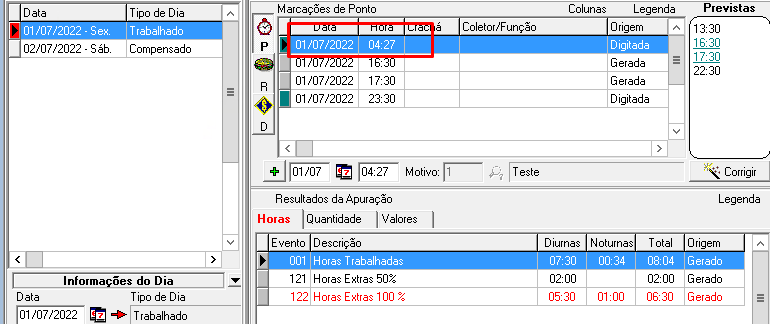 Horário Realizado: 04:27 - 16:30 - 17:30 - 23:30 igual a 18:21