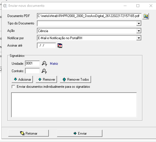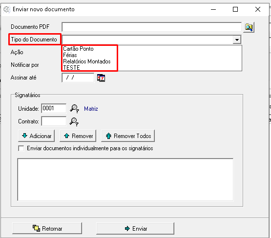 Ao clicar em Enviar o Documento, informe o nome do Tipo do Documento: