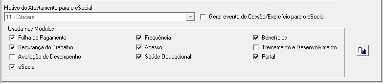 Observação: Caso seja os mesmos parâmetros da licença sem remuneração, poderá utilizar as mesmas configurações para informar no novo cadastro.