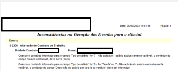 Ao tentar realizar a troca no contrato para mensalista com salário fixo, é apresentada a inconsistência abaixo: