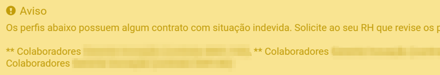 Os perfis abaixo possuem algum contrato com situação indevida. Solicite ao seu RH que revise os perfis.