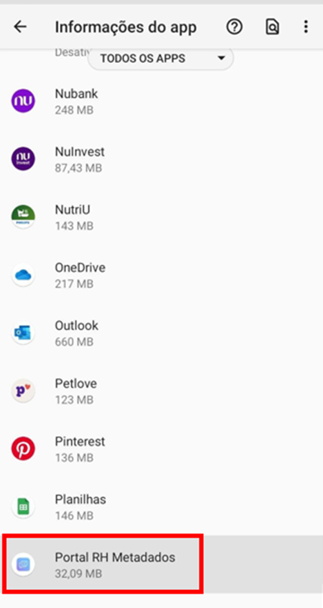 1. Verifique se existem atualizações na Play Store do aplicativo Portal RH, se houver clique em Atualizar.