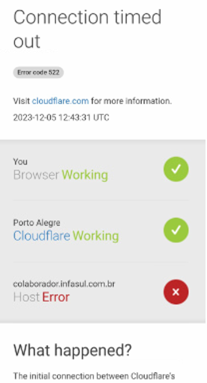 Lentidão e demora na abertura do APP Portal RH e Menus ou Erro: Connection timed out.
