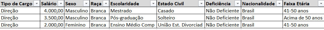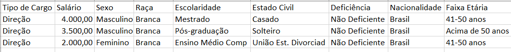 Agora terá dados que podem ser trabalhados em excel.