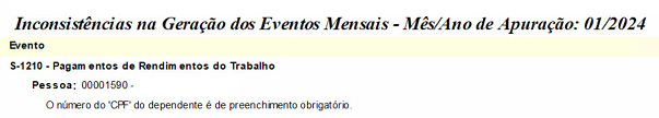 Ao gerar o Evento S-1210 retornou com a seguinte mensagem: