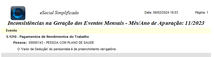Ao gerar o Evento Mensal S-1210 ocorre a mensagem abaixo: