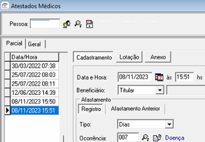 No Módulo Saúde Ocupacional, acesse o Menu: Registros > Atestados Médicos.
