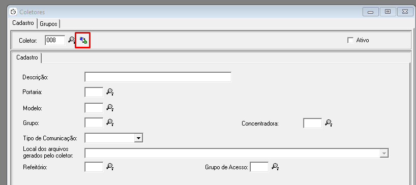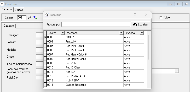 Para copiar um Coletor, sem ter a necessidade de criar todo o cadastro do zero, pode-se procurar um código disponível e seguir os passos abaixo: