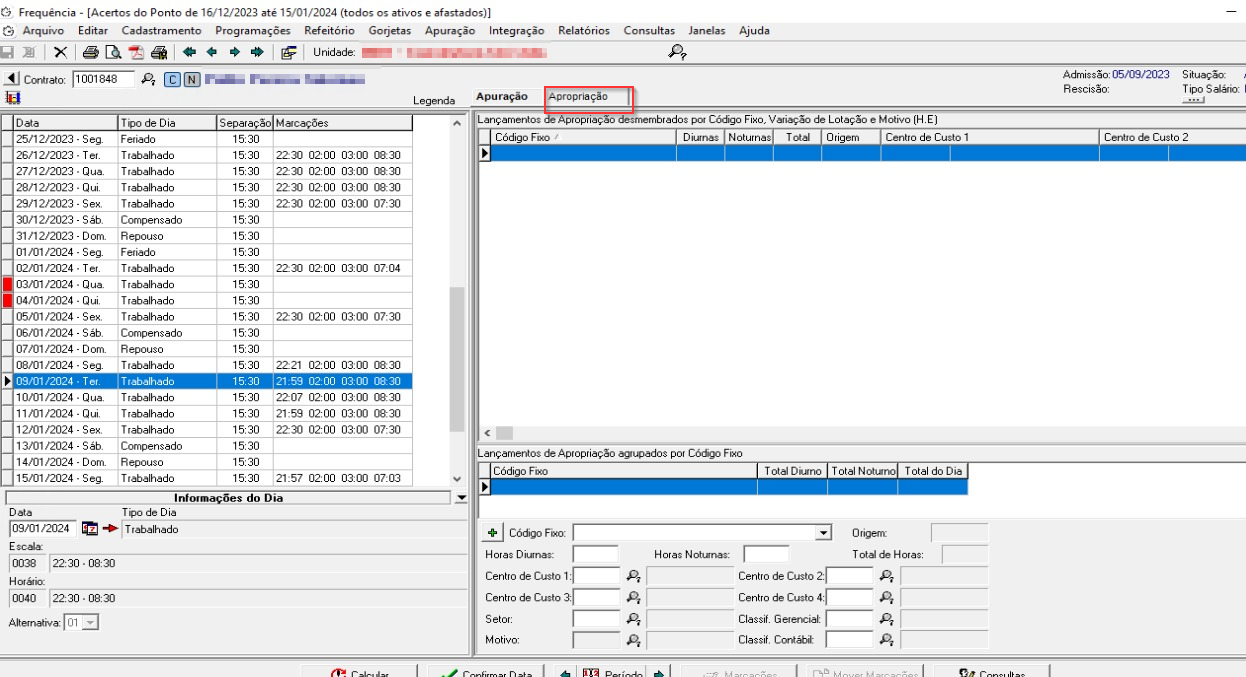 Ao realizar a Transferência Temporária no Sistema, a apropriação não é efetuada corretamente.