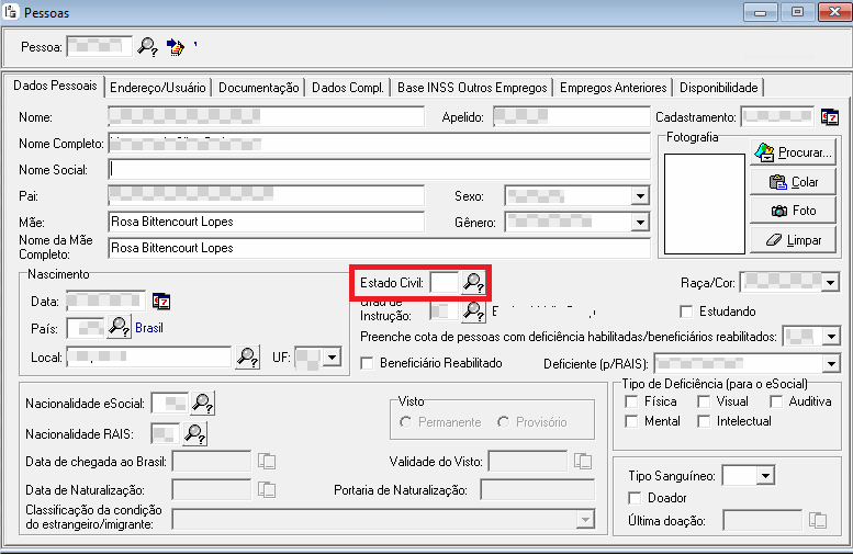 No Cadastro da Pessoa há campos exigidos neste Requerimento que estão em branco.