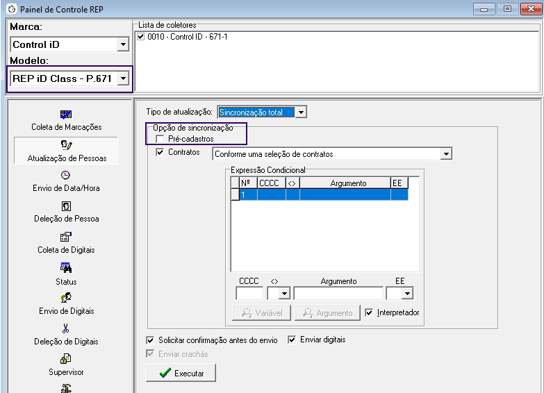 1. No Módulo Frequência, acesse o Menu: Integração > > Painel de Controle REP.