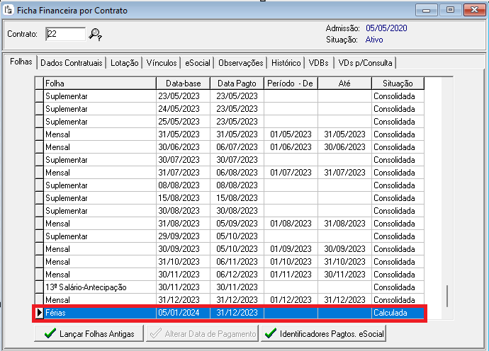 Isso ocasionaria diferença de IRRF, pois o Evento seria enviado sem a respectiva folha, pois a mesma está com data base Dezembro. Contrato com férias com data base 05/01/2024 e data de pagamento 31/12/2023.
