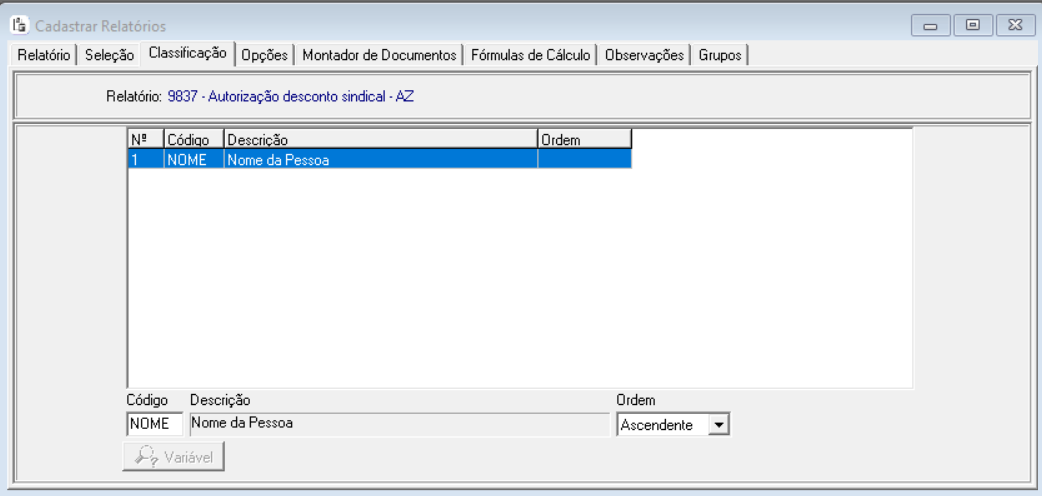 Cliente solicitou que o Relatório de Autorização Desconto Sindical apresentasse as informações por ordem alfabética (A - Z).
