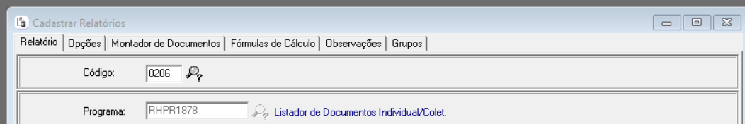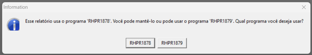 Como o Relatório do cliente estava com o programa RHPR1878, foi necessário criá-lo com o RHPR1879.