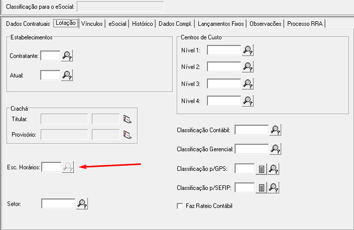 O Vínculo de Escala de Horário não está liberando no contrato selecionado: