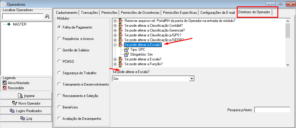 3. Localize o usuário que está cadastrando o contrato e veja como estão as parametrizações abaixo: