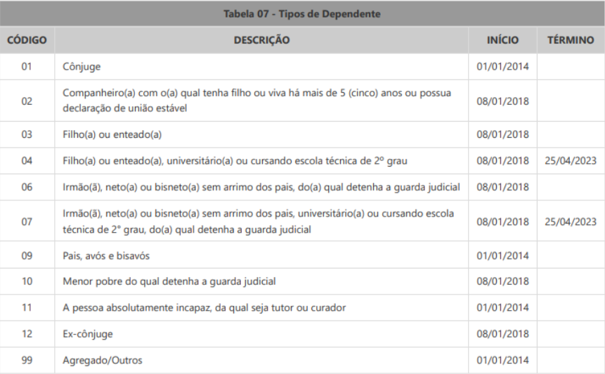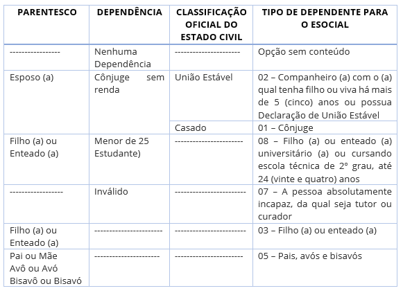 Confira as opções atualizadas do campo Tipo de Dependente para o eSocial: