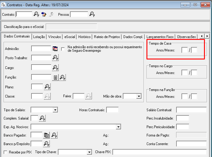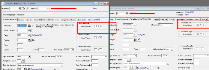 Uma situação que pode surgir é a divergência entre o Tempo de Casa e o Tempo de Ficha e Contrato do Colaborador. Siga o passo a passo para realizar o ajuste.