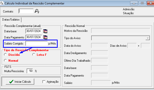 Observação: Só será calculado a diferença, se o Salário informado for maior do que o pago na Rescisão principal.
