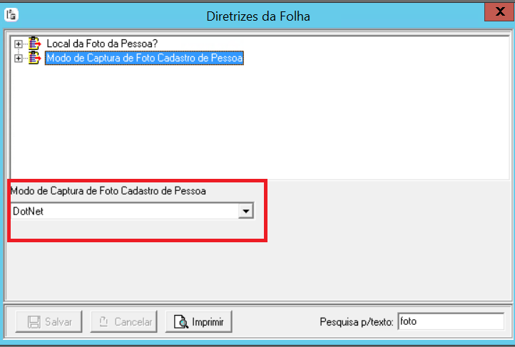 Importante! As configurações da WebCam no computador já devem estar configuradas antes da alteração na diretriz da Folha de Pagamento. Essa configuração é realizada pelo TI do cliente.