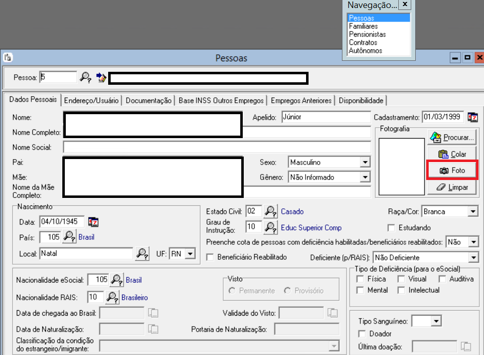 Siga o passo a passo para a inclusão da foto no Cadastro da pessoa: