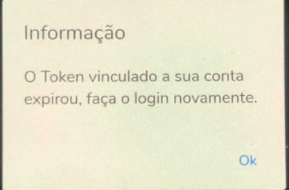 O Token vinculado a sua conta expirou, faça o login novamente.