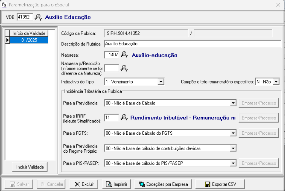 Natureza de Rubrica para o eSocial