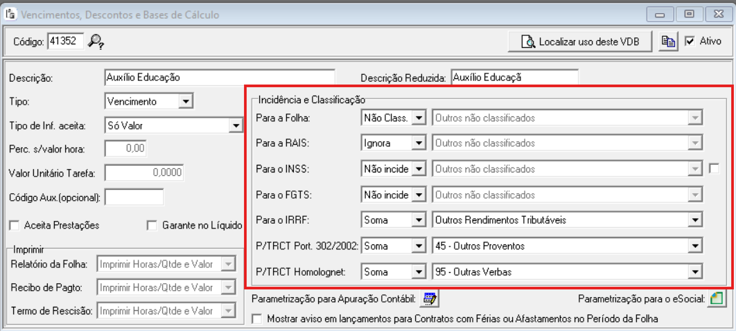 Importante! As incidências sobre vencimentos e descontos podem ser alteradas ou revogadas por ato legal. Recomenda-se sempre confirmar com o departamento jurídico da empresa ou solicitar uma consulta formal à Receita Federal do Brasil e ao Ministério do Trabalho.