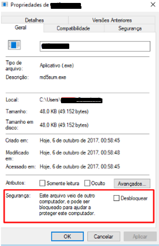 Verificar nas propriedades do executável MetadadosAppRH.exe se aparece esta opção de Desbloquear o arquivo. Se aparecer, marcar ela para desbloquear.
