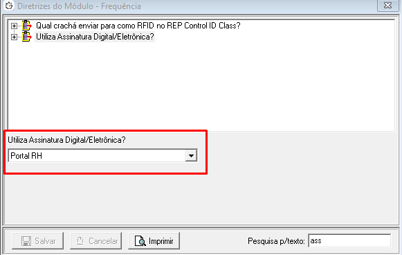 - Clique na diretriz Utiliza Assinatura Digital/Eletrônica? e selecione a opção Portal RH.