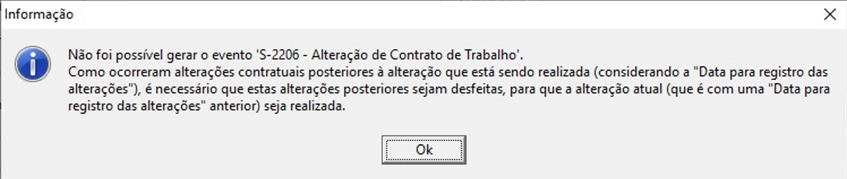 A mensagem abaixo ocorre quando há alteração cadastral posterior a esta alteração que está sendo realizada.