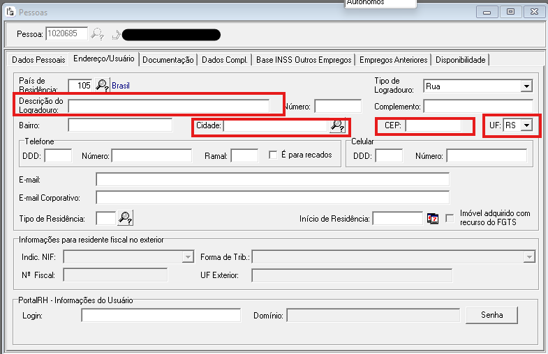 Na aba Endereço/Usuário