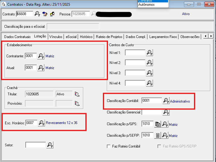 Na aba Dados Contratuais