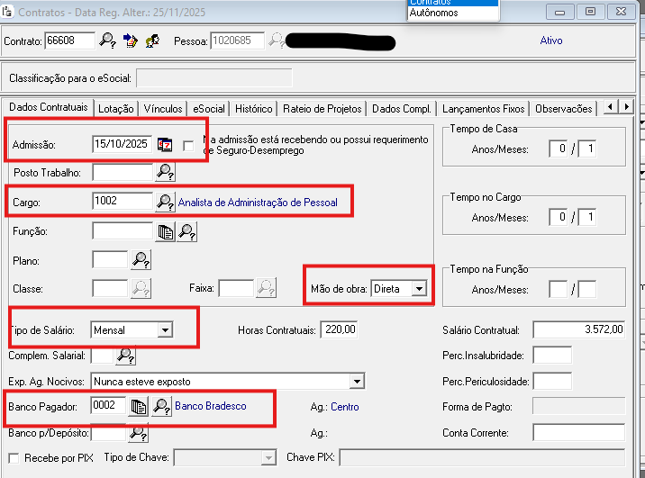 Para validação final da admissão, é necessário o correto preenchimento das informações obrigatórias para o eSocial para envio do evento S-2200.
