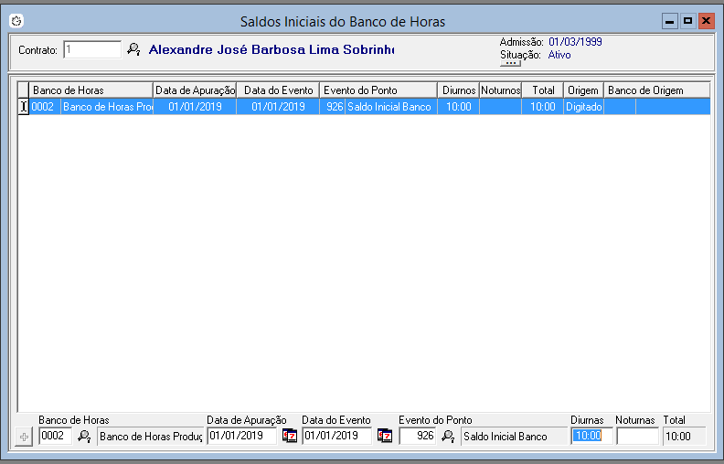 A inclusão de saldos iniciais normalmente ocorre em um processo de implantação de Banco de Horas no sistema, para um banco que já era controlado manualmente e/ou por outro aplicativo.