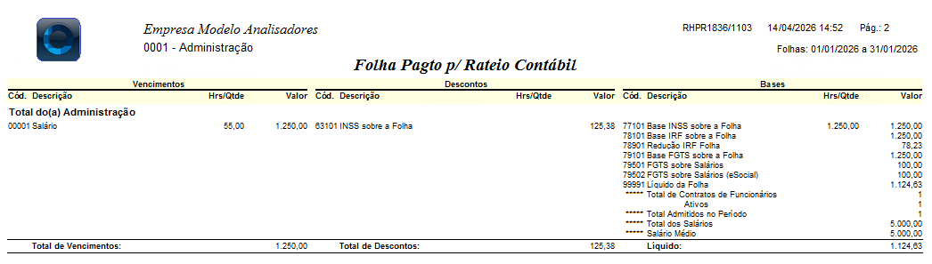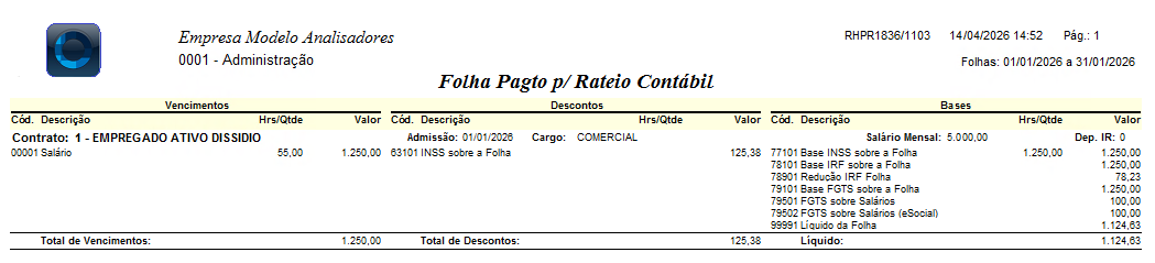1. Apenas o relatório Relação Analítica por Contrato gerado na rotina especial da Apropriação Contábil da Folha, irá expressar o rateio de valores de cada funcionário.