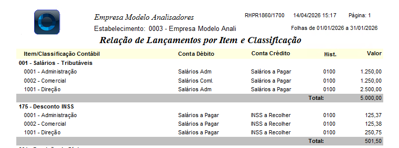 Para que seja emitido um relatório com as informações do Rateio Contábil precisa que seja incluído um novo relatório RHPR1836 - Folha de Pagamento p/ Rateio Contábil