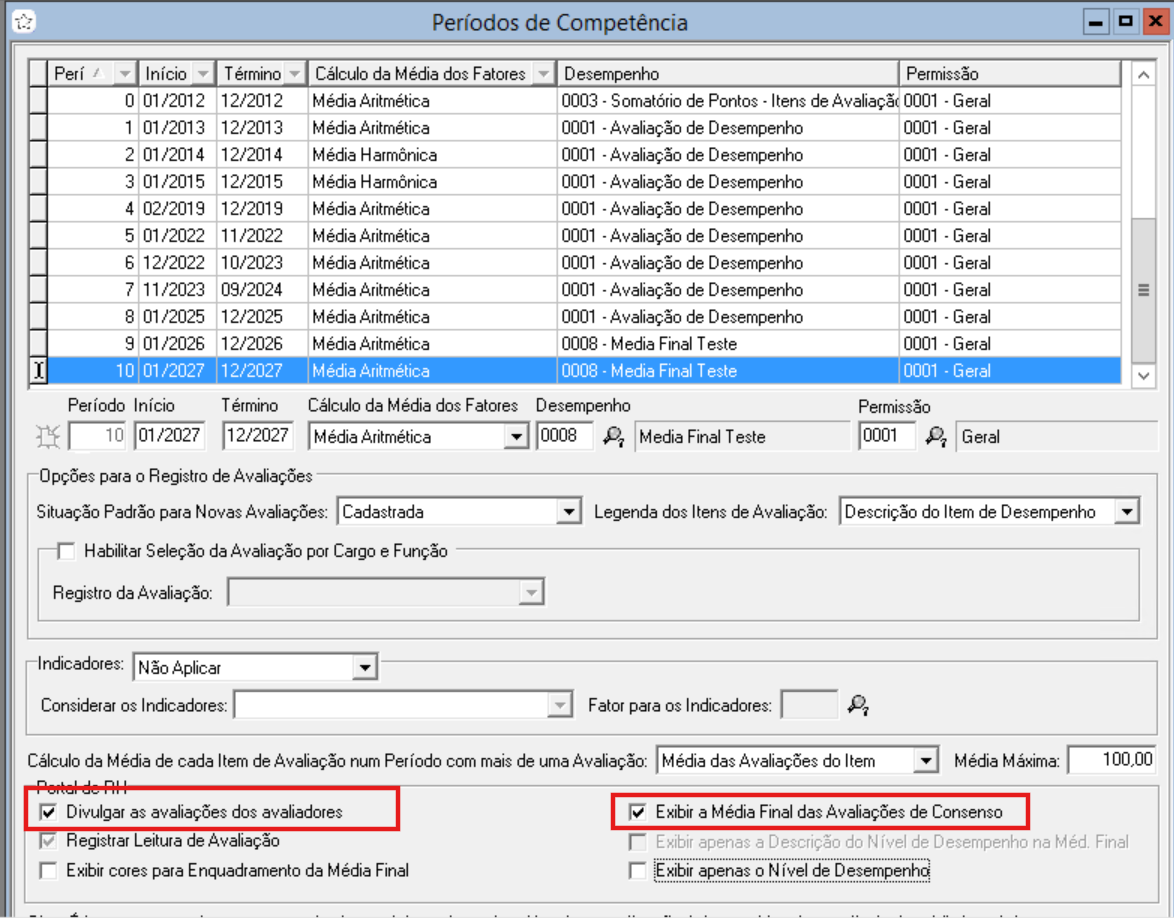 Em seguida, marque os campos do quadro Portal de RH: