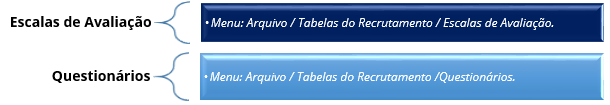 Para cadastro do Questionário, acesse o Menu: Arquivo / Tabelas de Recrutamento / Questionário.