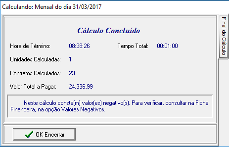 Esta mensagem de aviso é apresentada na tela, logo após o cálculo da Folha de Pagamento mensal.