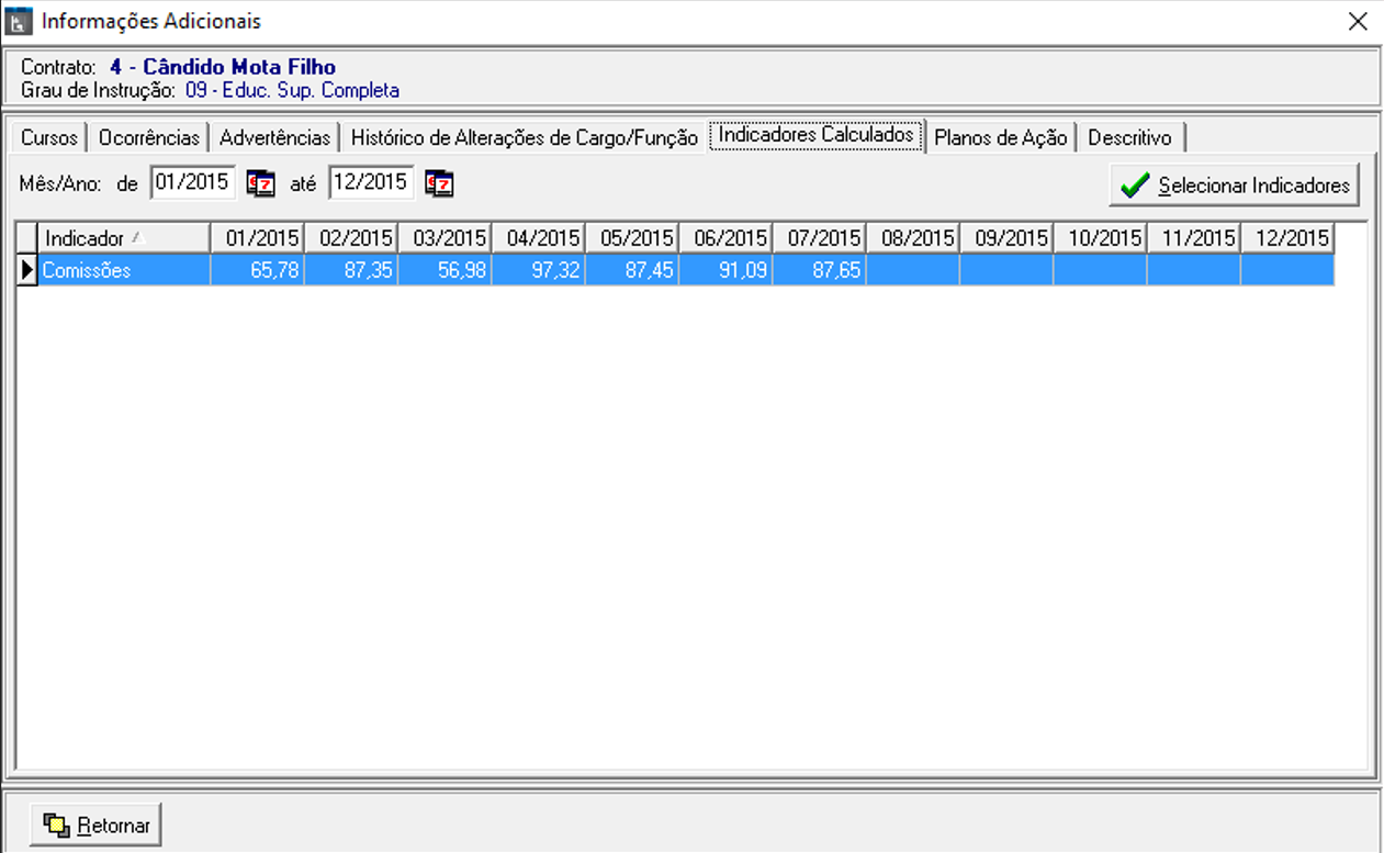 O resultado do indicador no período pode ser consultado na guia Informações Adicionais, do registro da avaliação de desempenho.