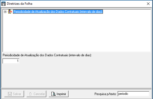 Localize a Diretriz Periodicidade de Atualização dos Dados Contratuais (Intervalo de dias) e altere para 1: